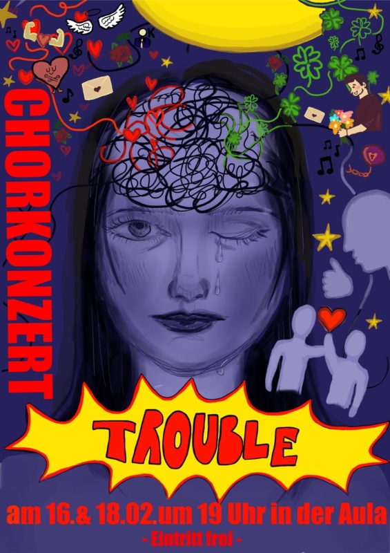 Am 16. und am 18. Februar 2026 werden die Chöre aller Jahrgangsstufen ihr Konzert „Trouble“ um 19 Uhr in der Aula präsentieren.